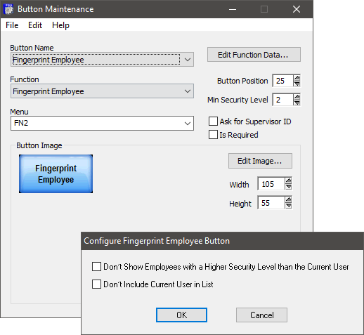 - In Button Maintenance, select Fingerprint Employee from the Function drop-down.