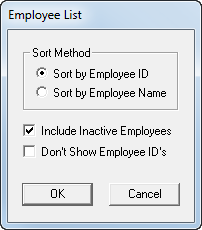 - Select the Include Inactive Employees check box to include inactive employees in the list.