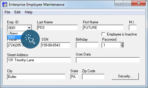 After installing the security certificate on each Store Server, configure an Enterprise Employee for use in the Enterprise Back Office. A default employee has been created in the Fusion Enterprise database. Sign on as the default employee using the steps shown below, then configure the Enterprise Employee's access.