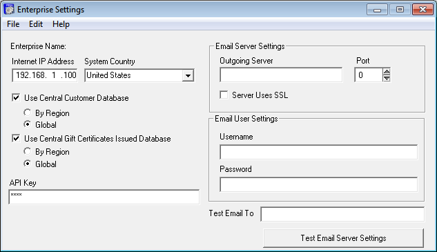 After configuring the Enterprise and Store Server settings, use Store / Region Maintenance to set up Stores and Regions. See Enterprise Store / Region Maintenance for more information.
